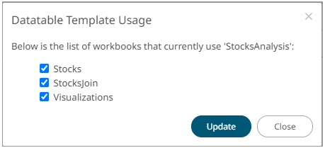 2. Check the workbook boxes that will be updated based on the changes made on the associated data table template.