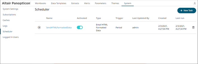 Panopticon Visualization Server provides the functionality to create tasks to generate and email HTML-formatted table exported from a selected workbook and dashboards.