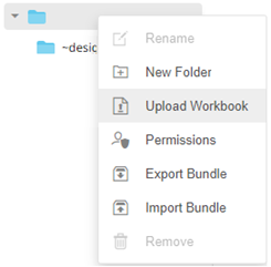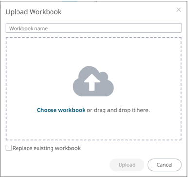 Users with an Administrator role can upload workbooks to the currently selected folder in the Workbooks page.