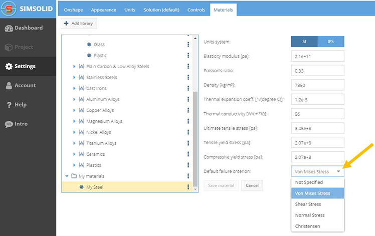 design. While default criterion are provided for each SimSolid material, they should be considered as examples