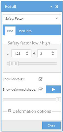safety factor value of 1.25 indicates a 25% safety margin on the failure criterion