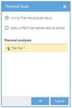 - Thermal analysis result field – the temperatures are imported from an existing Thermal analysis.