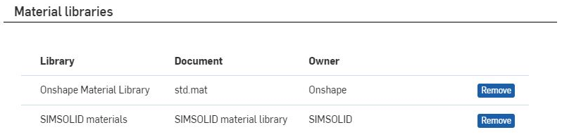 SimSolid materials are added to the list of material libraries on the Preferences page.
