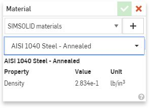 - Select SimSolid materials from the list in the dialog.