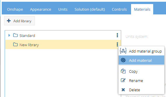 The default material library, called Standard, is read only and may not be modified by the user. You must create a new library to store custom materials.