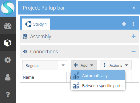 SimSolid Cloud finds all connections within the chosen tolerances. On the Connections workbench, all found connections are listed.